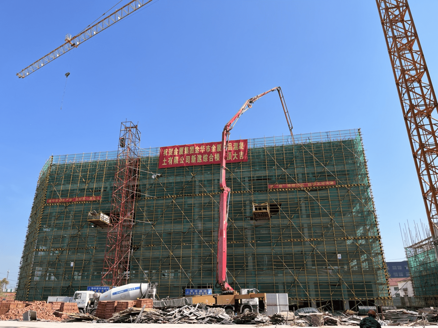 7月23日,金華市金廈商品混凝土有限公司綠色環(huán)保遷建項(xiàng)目綜合辦公大樓順利結(jié)頂,這標(biāo)志著該項(xiàng)目建設(shè)完成了主體工程,距離項(xiàng)目竣工交付又邁進(jìn)了重要的一步。