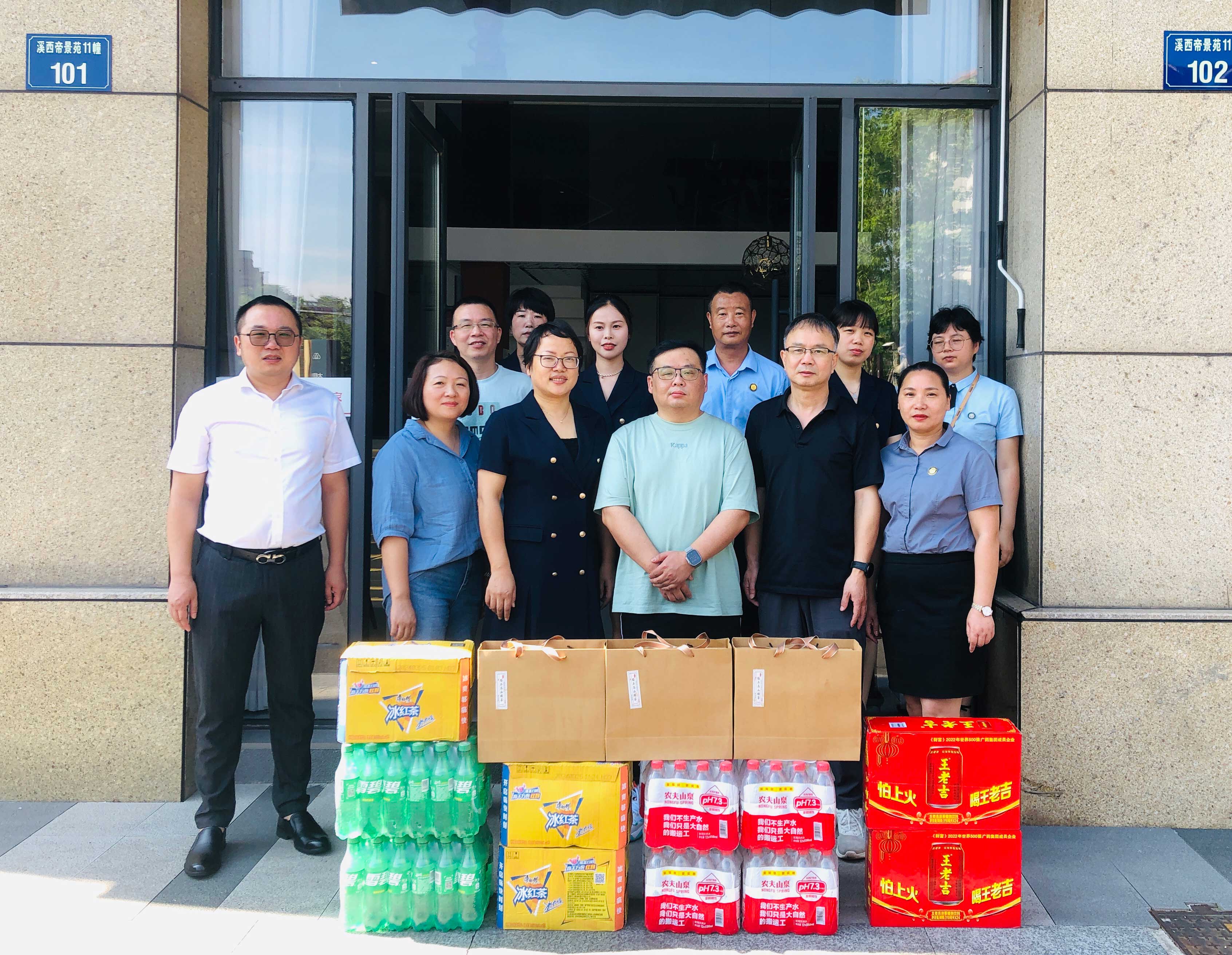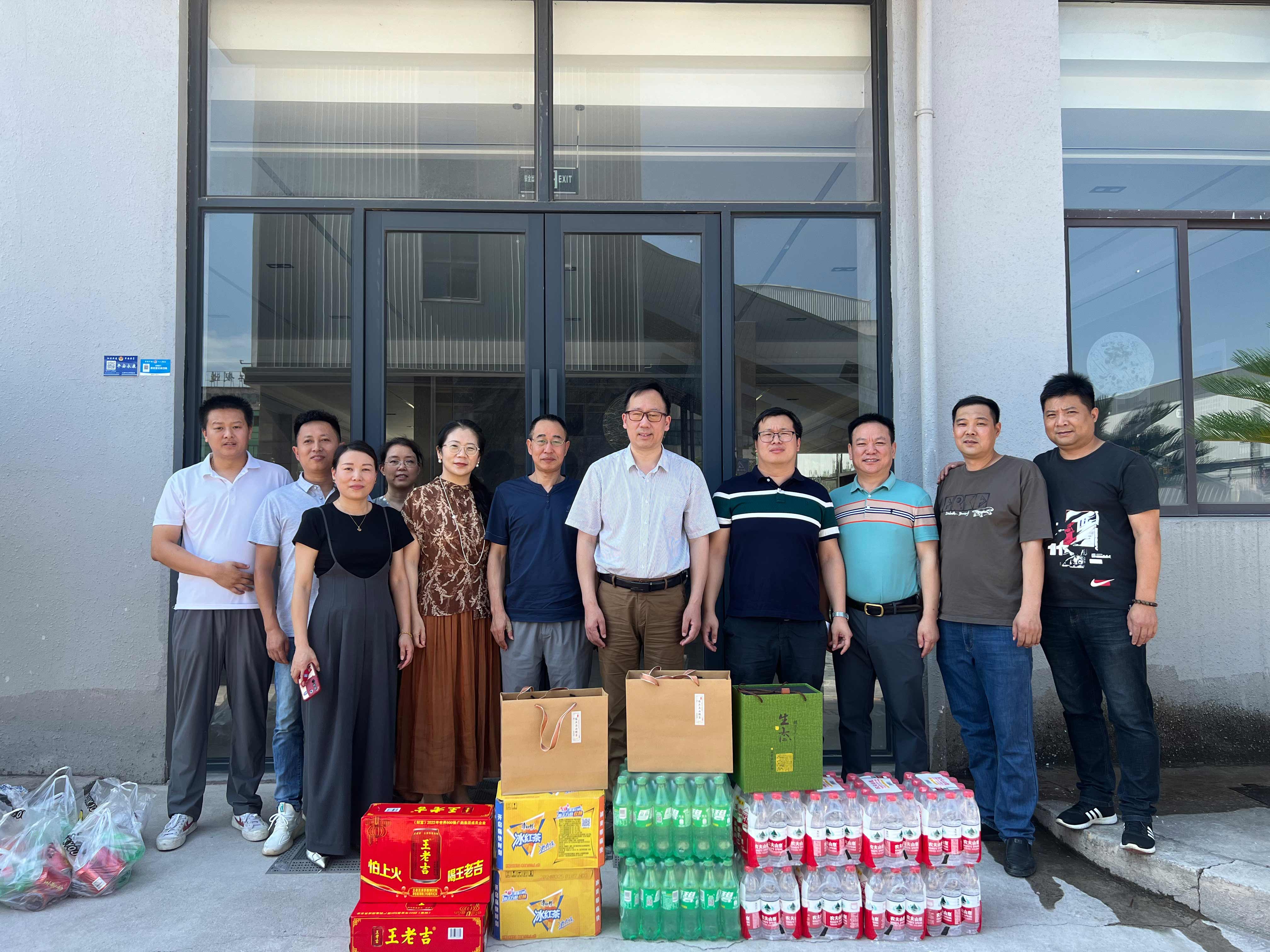集團(tuán)高管層分三路慰問近20家子公司。走訪中,集團(tuán)領(lǐng)導(dǎo)深入子公司生產(chǎn)場地,了解各家公司的生產(chǎn)任務(wù)安排和員工的作息排班情況?!按蠹倚量嗔耍邷靥鞖庖欢ㄒ龊梅朗罱禍毓ぷ?!”在高溫工作現(xiàn)場,傅融總裁代表集團(tuán)向奮戰(zhàn)在一線的員工致以親切的問候,并為他們送上冰紅茶、王老吉、礦泉水等清涼物資,對他們在高溫下堅(jiān)守崗位表示感謝。傅總叮囑大家工作中要增強(qiáng)安全防護(hù)意識,落實(shí)好防暑降溫措施,確保安全生產(chǎn),平安度夏。