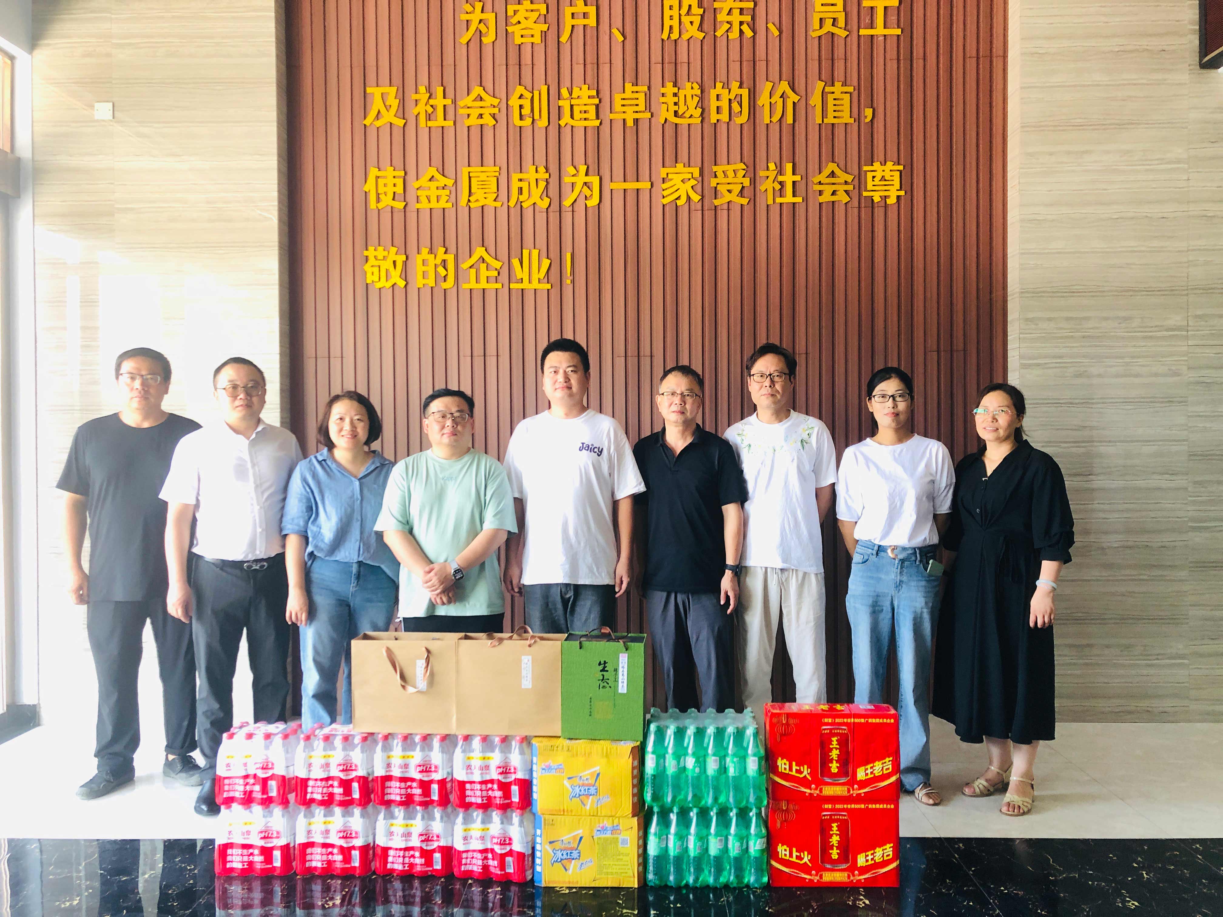 為切實(shí)保障一線員工的身體健康,將集團(tuán)“以人為本”的理念落到實(shí)處,持續(xù)推進(jìn)“幸福金廈”建設(shè),提升員工的凝聚力和向心力,7月10日,金廈集團(tuán)總裁傅融率集團(tuán)管理層走訪慰問高溫下堅(jiān)守崗位、辛勤勞動的一線員工,為他們送去清涼和關(guān)懷。