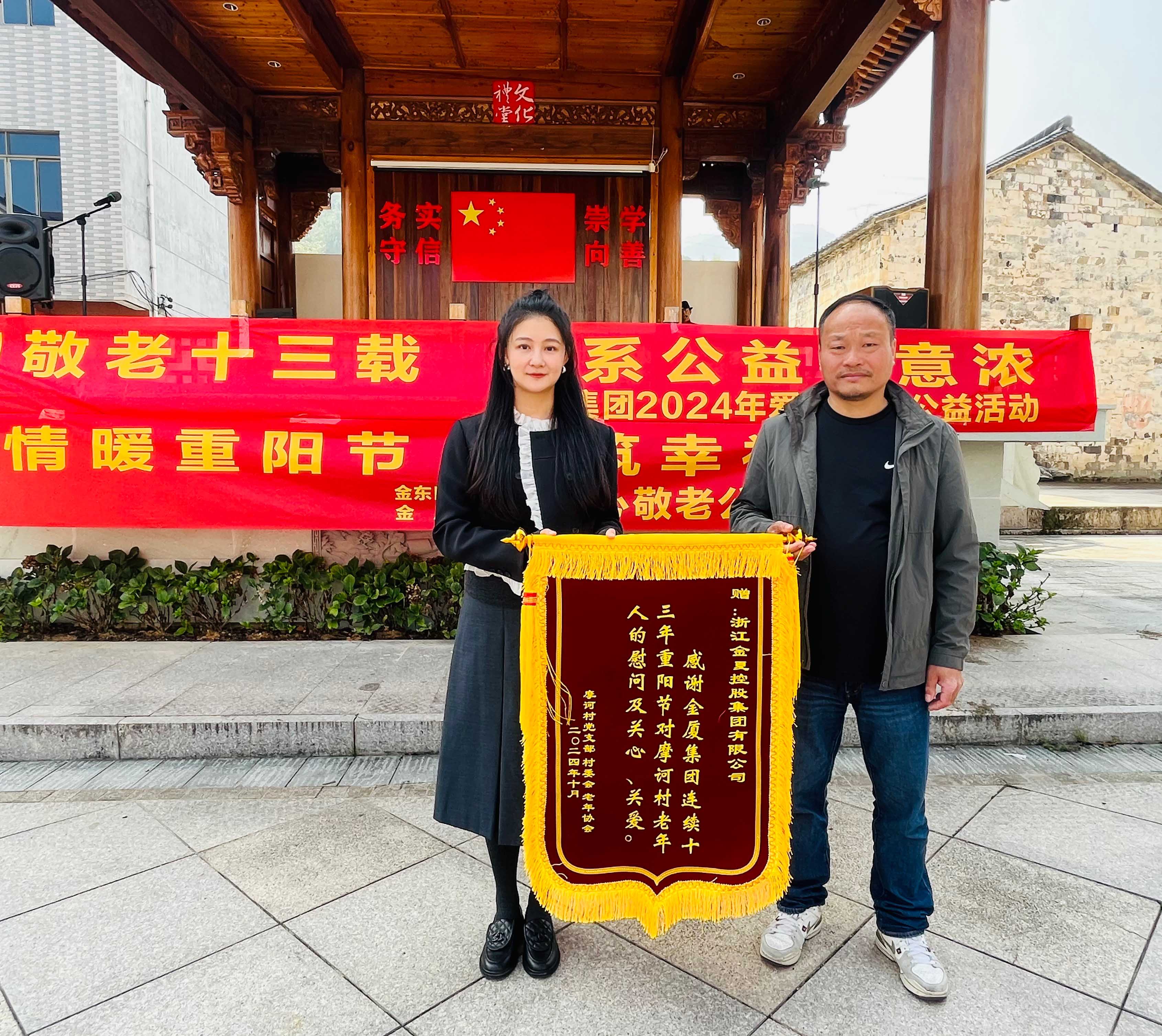 在2024年重陽節(jié)即將來臨之際,為進(jìn)一步弘揚(yáng)中華民族尊老敬老的傳統(tǒng)美德,展現(xiàn)企業(yè)的社會(huì)責(zé)任感, 10月10日上午,金華市政協(xié)委員、金廈集團(tuán)董事長蔣晨虹率集團(tuán)高管及各條線負(fù)責(zé)人一行再次前往金東區(qū)嶺下鎮(zhèn)摩訶村,開展“情暖重陽節(jié),共筑幸福夢(mèng)”重陽慰問活動(dòng),為村里老年人和困難家庭送上慰問金、慰問品,并通過豐富多彩的活動(dòng)為大家送上節(jié)日的美好祝福。這也是金廈集團(tuán)連續(xù)第13年開展重陽節(jié)助老公益活動(dòng)。