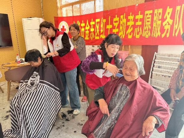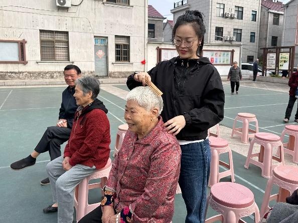 物資表心意,服務(wù)更暖心。活動現(xiàn)場專門設(shè)置了公益理發(fā)、健康義診、推拿服務(wù)等志愿項目,由醫(yī)生和志愿者們?yōu)槔先颂峁┵N心服務(wù),現(xiàn)場氣氛溫馨而有序。87歲的章秋玉老人家在推拿醫(yī)生按完肩頸后,紅了眼眶:“年年都想著我們,真是和家里人一樣親。”?